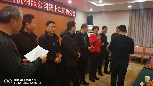 新年將至,周口市通用鼓風(fēng)機(jī)有限公司于2020年1月11日,在周口飯店召開第十次銷售工作會(huì)議。會(huì)議由王雷經(jīng)理主持,公司董事長(zhǎng)兼總經(jīng)理李生華先生回顧了20年來企業(yè)的發(fā)展歷程,總結(jié)了一年來的成績(jī)與不足,對(duì)今后公司逐步實(shí)現(xiàn)生產(chǎn)設(shè)備智能化、企業(yè)管理現(xiàn)代化,生產(chǎn)環(huán)節(jié)規(guī)范化做出了計(jì)劃安排,希望公司經(jīng)過大家的共同努力,再上一個(gè)新臺(tái)階。公司銷售經(jīng)理崔峰義、生產(chǎn)經(jīng)理杜西亮、技術(shù)經(jīng)理張松旺分別做重要講話。各銷售經(jīng)理交流了工作中存在的問題,對(duì)如何更好的服務(wù)于客戶做了深刻探討,希望公司在產(chǎn)品的生產(chǎn)工藝,交貨工期,售后技術(shù)服務(wù)等方面更加完善。