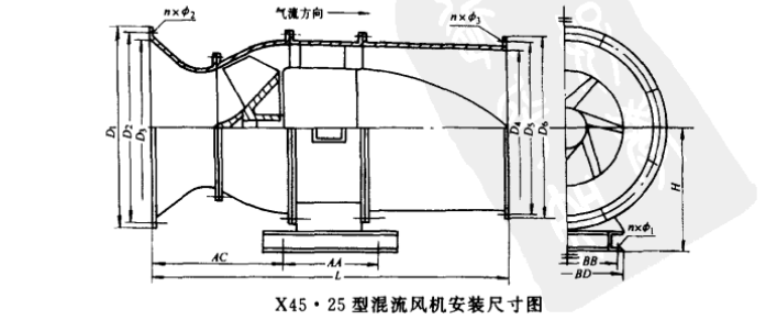 風(fēng)機:風(fēng)機采用斜流風(fēng)機,此風(fēng)機是一種效高低噪聲的中壓風(fēng)機。是該風(fēng)冷裝置重要組成部分。風(fēng)機由筒體、葉輪、電機等部分組成